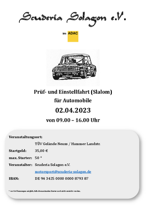 Wenn Ihr wollt, könnt ihr bereits jetzt nennen, hierzu bitte das folgende Formular an uns ausgefüllt per E-Mail motorsport@scuderia-solagon.de zusenden.